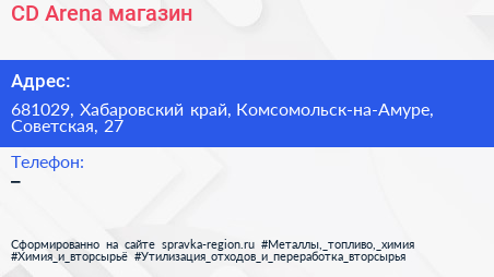 CD-Arena, магазин по адресу 681029, Хабаровский край, Комсомольск-на-Амуре, Советская, 27 в дальнейшем Организация, размещена в следующих категориях: