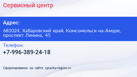 Сервисный центр по адресу 681024, Хабаровский край, Комсомольск-на-Амуре, проспект Ленина, 45 в дальнейшем Организация, размещена в следующих категориях: