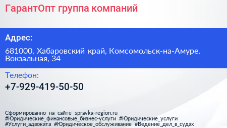 ГарантОпт, группа компаний по адресу 681000, Хабаровский край, Комсомольск-на-Амуре, Вокзальная, 34 в дальнейшем Организация, размещена в следующих категориях: