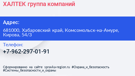 ХАЛТЕК, группа компаний по адресу 681000, Хабаровский край, Комсомольск-на-Амуре, Кирова, 54/3 в дальнейшем Организация, размещена в следующих категориях: