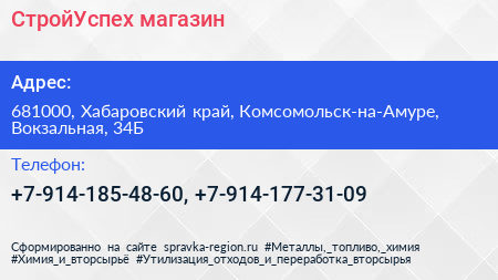 СтройУспех, магазин по адресу 681000, Хабаровский край, Комсомольск-на-Амуре, Вокзальная, 34Б в дальнейшем Организация, размещена в следующих категориях: