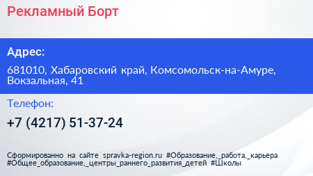 Рекламный Борт по адресу 681010, Хабаровский край, Комсомольск-на-Амуре, Вокзальная, 41 в дальнейшем Организация, размещена в следующих категориях: