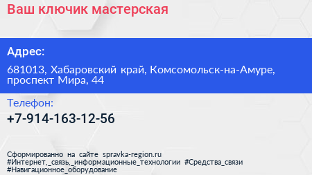 Ваш ключик, мастерская по адресу 681013, Хабаровский край, Комсомольск-на-Амуре, проспект Мира, 44 в дальнейшем Организация, размещена в следующих категориях: