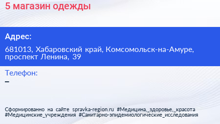 5, магазин одежды по адресу 681013, Хабаровский край, Комсомольск-на-Амуре, проспект Ленина, 39 в дальнейшем Организация, размещена в следующих категориях: