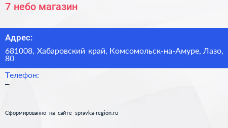 7 небо, магазин по адресу 681008, Хабаровский край, Комсомольск-на-Амуре, Лазо, 80 в дальнейшем Организация, размещена в следующих категориях: