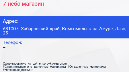 7 небо, магазин по адресу 681007, Хабаровский край, Комсомольск-на-Амуре, Лазо, 25 в дальнейшем Организация, размещена в следующих категориях: