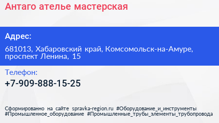 Антаго, ателье-мастерская по адресу 681013, Хабаровский край, Комсомольск-на-Амуре, проспект Ленина, 15 в дальнейшем Организация, размещена в следующих категориях: