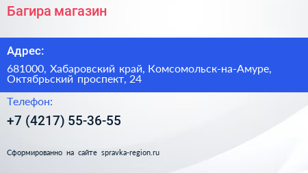 Багира, магазин по адресу 681000, Хабаровский край, Комсомольск-на-Амуре, Октябрьский проспект, 24 в дальнейшем Организация, размещена в следующих категориях: