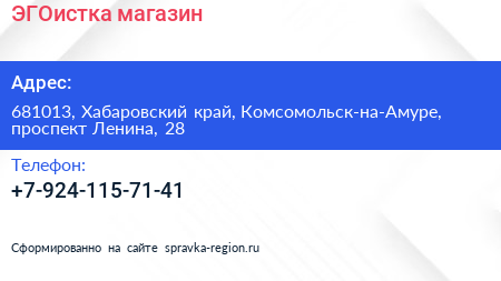 ЭГОистка, магазин по адресу 681013, Хабаровский край, Комсомольск-на-Амуре, проспект Ленина, 28 в дальнейшем Организация, размещена в следующих категориях: