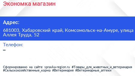 Экономка, магазин по адресу 681003, Хабаровский край, Комсомольск-на-Амуре, улица Аллея Труда, 52 в дальнейшем Организация, размещена в следующих категориях: