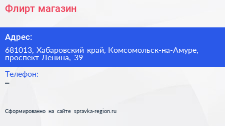 Флирт, магазин по адресу 681013, Хабаровский край, Комсомольск-на-Амуре, проспект Ленина, 39 в дальнейшем Организация, размещена в следующих категориях: