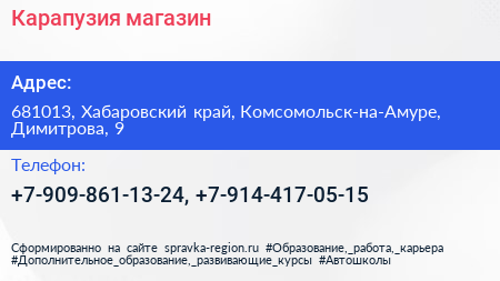 Карапузия, магазин по адресу 681013, Хабаровский край, Комсомольск-на-Амуре, Димитрова, 9 в дальнейшем Организация, размещена в следующих категориях: