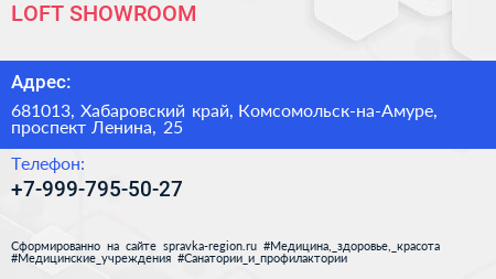 LOFT SHOWROOM по адресу 681013, Хабаровский край, Комсомольск-на-Амуре, проспект Ленина, 25 в дальнейшем Организация, размещена в следующих категориях: