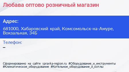 Любава, оптово-розничный магазин по адресу 681000, Хабаровский край, Комсомольск-на-Амуре, Вокзальная, 34Б в дальнейшем Организация, размещена в следующих категориях: