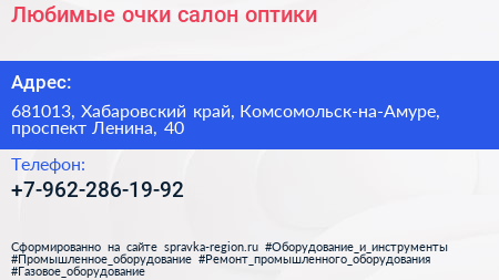 Любимые очки, салон оптики по адресу 681013, Хабаровский край, Комсомольск-на-Амуре, проспект Ленина, 40 в дальнейшем Организация, размещена в следующих категориях: