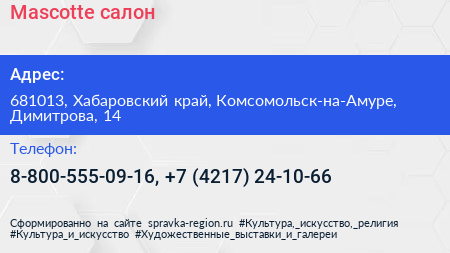 Mascotte, салон по адресу 681013, Хабаровский край, Комсомольск-на-Амуре, Димитрова, 14 в дальнейшем Организация, размещена в следующих категориях: