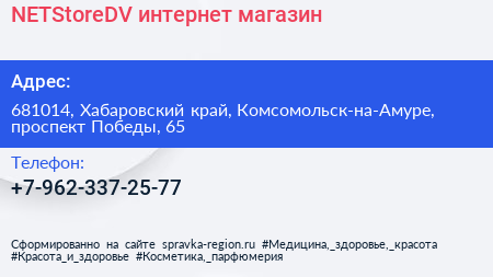 NETStoreDV, интернет-магазин по адресу 681014, Хабаровский край, Комсомольск-на-Амуре, проспект Победы, 65 в дальнейшем Организация, размещена в следующих категориях: