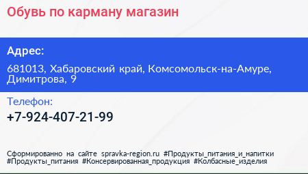 Обувь по карману, магазин по адресу 681013, Хабаровский край, Комсомольск-на-Амуре, Димитрова, 9 в дальнейшем Организация, размещена в следующих категориях: