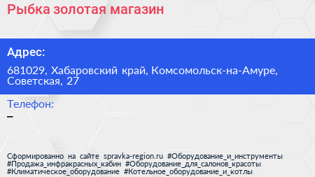 Рыбка золотая, магазин по адресу 681029, Хабаровский край, Комсомольск-на-Амуре, Советская, 27 в дальнейшем Организация, размещена в следующих категориях: