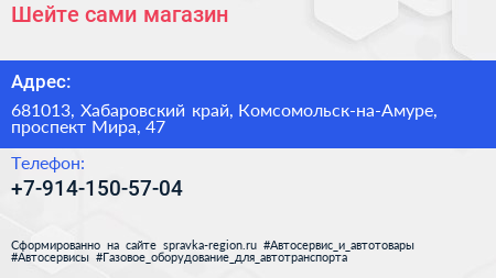 Шейте сами, магазин по адресу 681013, Хабаровский край, Комсомольск-на-Амуре, проспект Мира, 47 в дальнейшем Организация, размещена в следующих категориях: