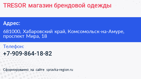 TRESOR, магазин брендовой одежды по адресу 681000, Хабаровский край, Комсомольск-на-Амуре, проспект Мира, 18 в дальнейшем Организация, размещена в следующих категориях: