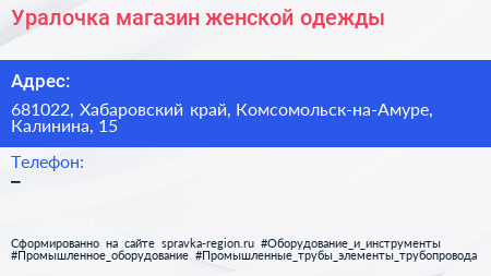Уралочка, магазин женской одежды по адресу 681022, Хабаровский край, Комсомольск-на-Амуре, Калинина, 15 в дальнейшем Организация, размещена в следующих категориях: