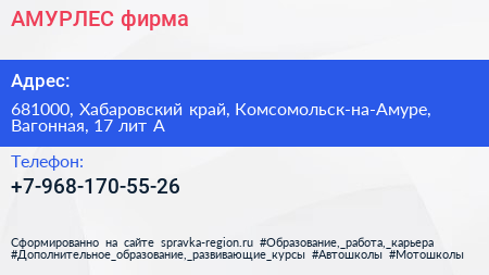 АМУРЛЕС, фирма по адресу 681000, Хабаровский край, Комсомольск-на-Амуре, Вагонная, 17 лит А в дальнейшем Организация, размещена в следующих категориях: