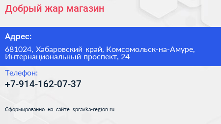 Добрый жар, магазин по адресу 681024, Хабаровский край, Комсомольск-на-Амуре, Интернациональный проспект, 24 в дальнейшем Организация, размещена в следующих категориях: