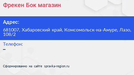 Фрекен Бок, магазин по адресу 681007, Хабаровский край, Комсомольск-на-Амуре, Лазо, 108/2 в дальнейшем Организация, размещена в следующих категориях: