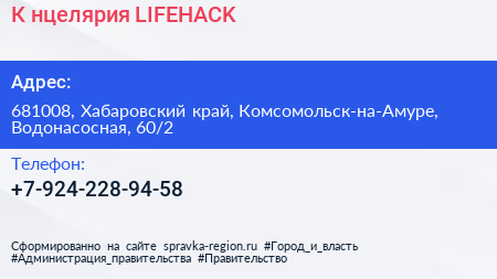 К@нцелярия LIFEHACK по адресу 681008, Хабаровский край, Комсомольск-на-Амуре, Водонасосная, 60/2 в дальнейшем Организация, размещена в следующих категориях: