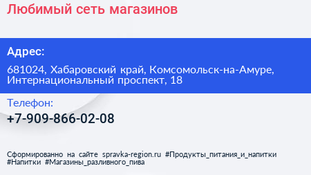 Любимый, сеть магазинов по адресу 681024, Хабаровский край, Комсомольск-на-Амуре, Интернациональный проспект, 18 в дальнейшем Организация, размещена в следующих категориях: