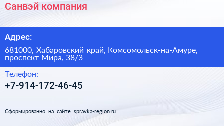Санвэй, компания по адресу 681000, Хабаровский край, Комсомольск-на-Амуре, проспект Мира, 38/3 в дальнейшем Организация, размещена в следующих категориях: