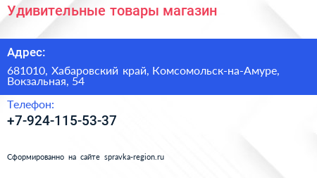 Удивительные товары, магазин по адресу 681010, Хабаровский край, Комсомольск-на-Амуре, Вокзальная, 54 в дальнейшем Организация, размещена в следующих категориях: