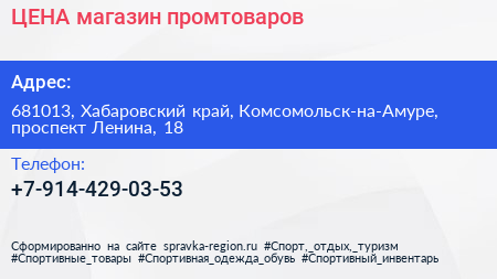 #ЦЕНА, магазин промтоваров по адресу 681013, Хабаровский край, Комсомольск-на-Амуре, проспект Ленина, 18 в дальнейшем Организация, размещена в следующих категориях: