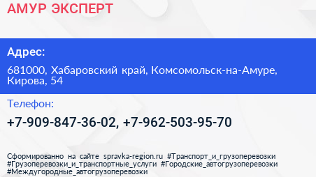 АМУР ЭКСПЕРТ по адресу 681000, Хабаровский край, Комсомольск-на-Амуре, Кирова, 54 в дальнейшем Организация, размещена в следующих категориях: