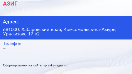 АЗИГ по адресу 681000, Хабаровский край, Комсомольск-на-Амуре, Уральская, 17 к2 в дальнейшем Организация, размещена в следующих категориях: