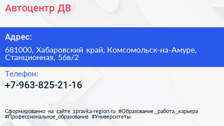 Автоцентр-ДВ по адресу 681000, Хабаровский край, Комсомольск-на-Амуре, Станционная, 56в/2 в дальнейшем Организация, размещена в следующих категориях:
