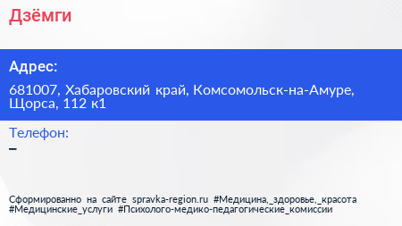 Дзёмги по адресу 681007, Хабаровский край, Комсомольск-на-Амуре, Щорса, 112 к1 в дальнейшем Организация, размещена в следующих категориях: