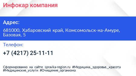 Для связи с организацией воспользуйтесь номером телефона: +7 (4217) 25-11-11. Пн: c 10:00-18:00, Вт: c 10:00-18:00, Ср: c 10:00-18:00, Чт: c 10:00-18:00, Пт: c 10:00-18:00, Сб: c 10:00-16:00, Вс: выходной, вы можете обратиться в эту организацию.