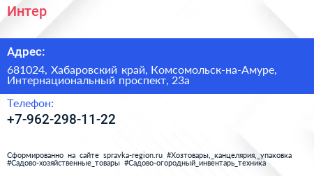 Интер по адресу 681024, Хабаровский край, Комсомольск-на-Амуре, Интернациональный проспект, 23а в дальнейшем Организация, размещена в следующих категориях: