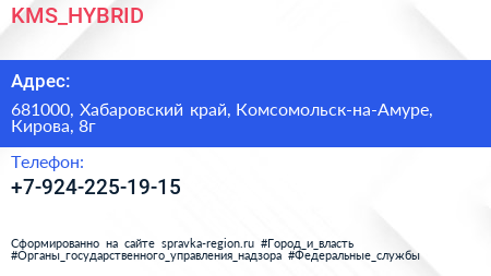 KMS_HYBRID по адресу 681000, Хабаровский край, Комсомольск-на-Амуре, Кирова, 8г в дальнейшем Организация, размещена в следующих категориях: