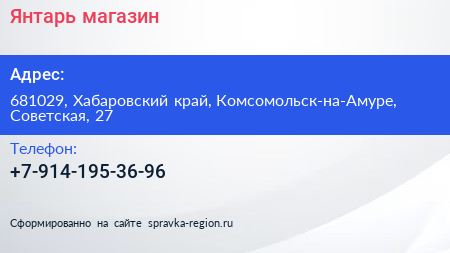 Янтарь, магазин по адресу 681029, Хабаровский край, Комсомольск-на-Амуре, Советская, 27 в дальнейшем Организация, размещена в следующих категориях: