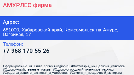 АМУРЛЕС, фирма по адресу 681000, Хабаровский край, Комсомольск-на-Амуре, Вагонная, 17 в дальнейшем Организация, размещена в следующих категориях: