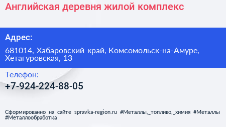 Английская деревня, жилой комплекс по адресу 681014, Хабаровский край, Комсомольск-на-Амуре, Хетагуровская, 13 в дальнейшем Организация, размещена в следующих категориях: