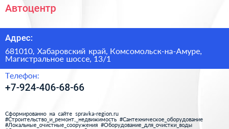 Автоцентр по адресу 681010, Хабаровский край, Комсомольск-на-Амуре, Магистральное шоссе, 13/1 в дальнейшем Организация, размещена в следующих категориях: