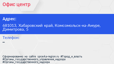 Офис-центр по адресу 681013, Хабаровский край, Комсомольск-на-Амуре, Димитрова, 5 в дальнейшем Организация, размещена в следующих категориях: