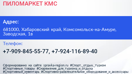 ПИЛОМАРКЕТ КМС по адресу 681000, Хабаровский край, Комсомольск-на-Амуре, Заводская, 1в в дальнейшем Организация, размещена в следующих категориях: