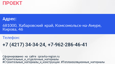 ПРОЕКТ по адресу 681000, Хабаровский край, Комсомольск-на-Амуре, Кирова, 46 в дальнейшем Организация, размещена в следующих категориях: