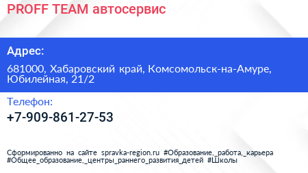 PROFF TEAM, автосервис по адресу 681000, Хабаровский край, Комсомольск-на-Амуре, Юбилейная, 21/2 в дальнейшем Организация, размещена в следующих категориях: