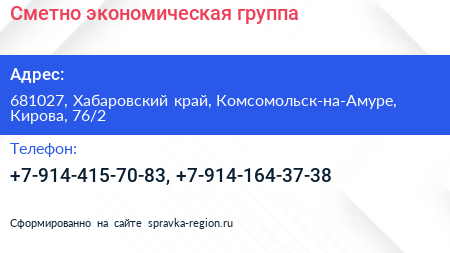 Сметно-экономическая группа по адресу 681027, Хабаровский край, Комсомольск-на-Амуре, Кирова, 76/2 в дальнейшем Организация, размещена в следующих категориях: